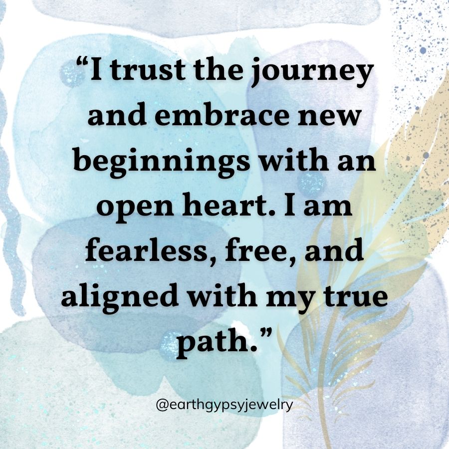 "I trust the journey and embrace new beginnings with an open heart. I am fearless, free, and aligned with my true path."